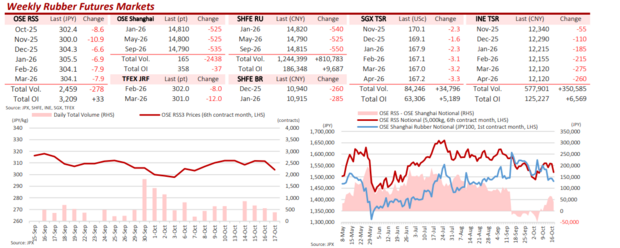 In Osaka, Japan, OSE’s RSS March-2026 contract closed down 2.5% week-on-week in light trading.