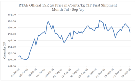 Brussels – Natural rubber prices continued to remain range-bound in September with TSR 20 prices showing “little sign of significant fluctuation,” according to Rubber Trade Association of Europe (RTAE).