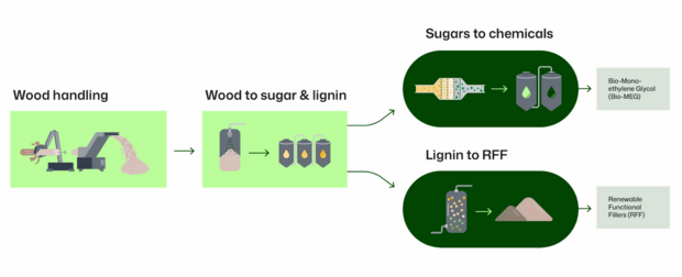 Production and sales of the first commercial products, industrial sugars and lignin-based products are expected to start by the end of the year, it stated.