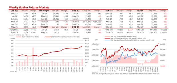 In Singapore, SICOM February-2026 contract closed slightly stronger than the previous week, up 0.5% in “steady range-bound conditions.”