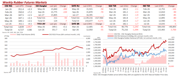 Tokyo – Natural rubber futures closed the third week of January mixed, with most major markets witnessing week-on-week declines.