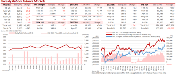Overall, JPX said rubber prices “remained firm”, supported by the recent rally in broader commodity markets, including copper and crude oil.