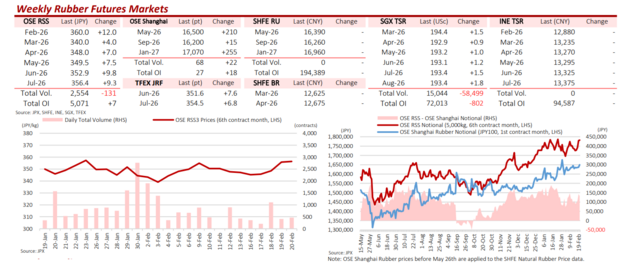 In Singapore, SICOM’s active May 2026 contract edged 0.5% higher compared to the week before.