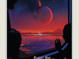 A travel poster by NASA imagining a trip to the new exoplanets announced in late February, Trappist…