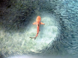 A school of tropical clupeid fish exhibit synchronized behaviour to keep a healthy distance from a …