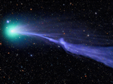 Comet Lovejoy sails through the solar system in a green haze leaving cometary dust in its wake.