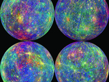 This mosaic of the Caloris basin (main image) on the surface of the planet is an enhanced colour c…
